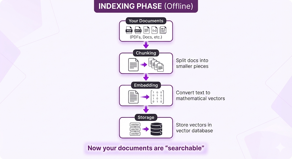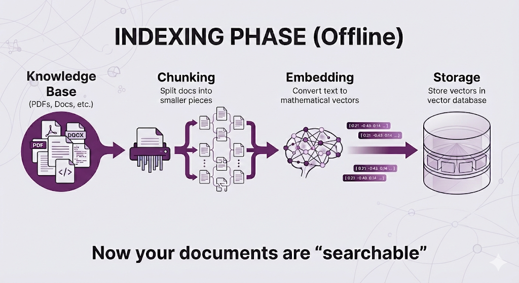- Indexing Phase (Offline): Prepare your documents so they're searchable