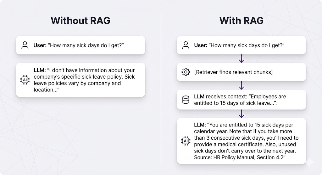 This is why RAG can handle real-time queries even with massive document collections. All the heavy lifting happened beforehand.