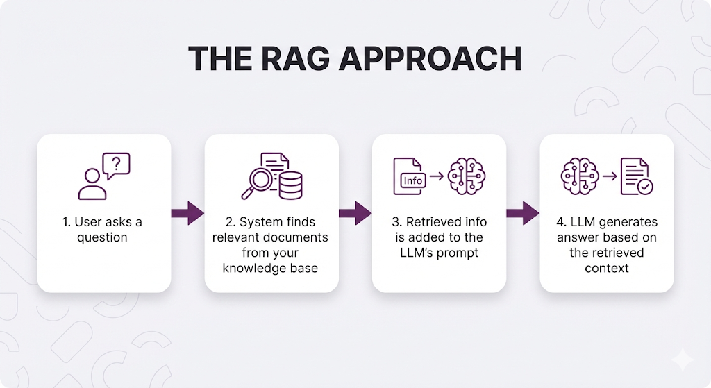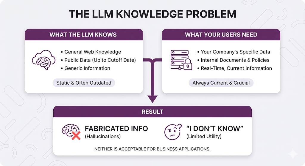 Your company's HR policies, internal documentation, customer data, product manuals none of this exists in a public LLM's training data. The model literally has no idea about your specific business context.
