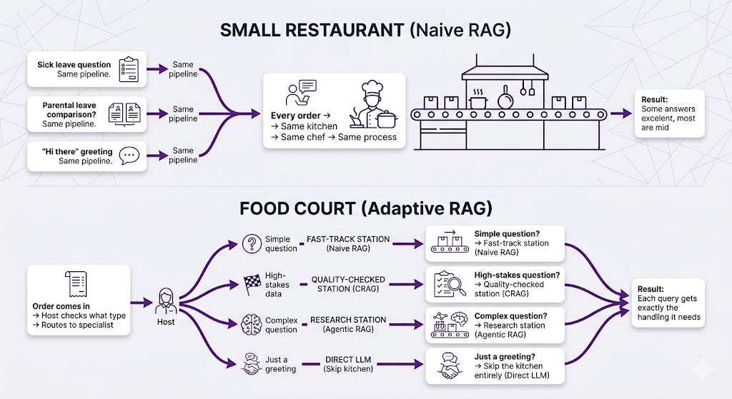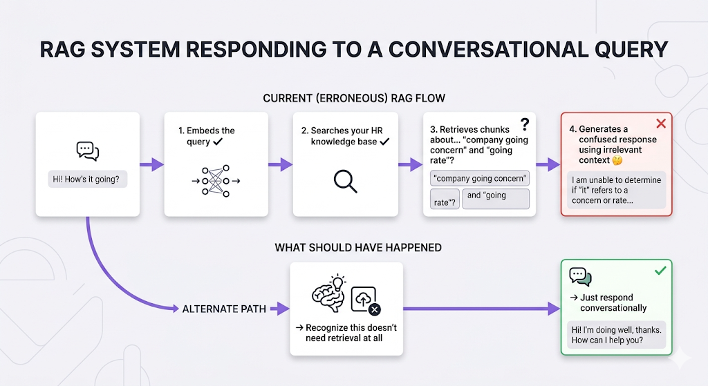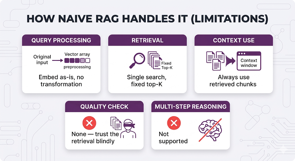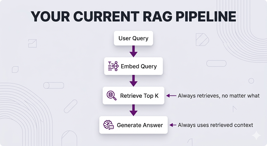 Think about it. Your current RAG pipeline handles every query the exact same way embed it, retrieve top-K chunks, generate an answer. That works great until it doesn't.