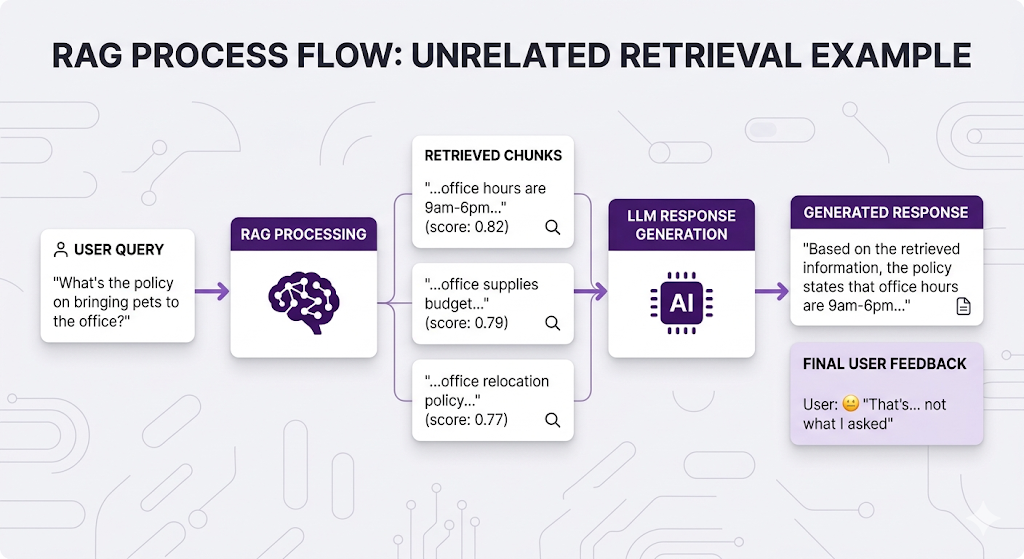 The retrieval technically worked it found chunks with "office" in them. But those chunks don't actually answer the question. And Naive RAG doesn't know the difference. It just vibes with whatever it gets back.