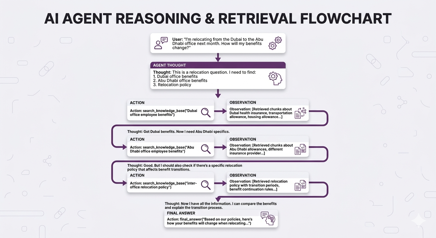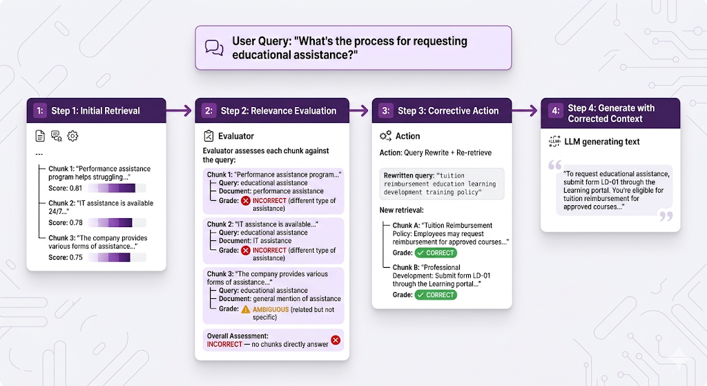 Without CRAG, the system would've rambled about performance reviews or IT support. With CRAG, it caught the bad retrieval and self-corrected. That's clutch.