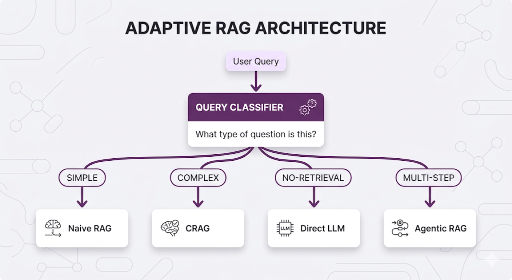| Query types vary widely | Adaptive RAG | Optimized routing |